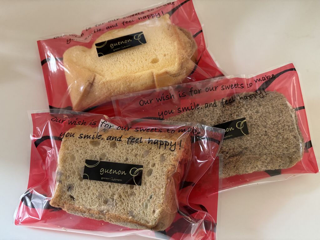 ずっと気になっていたグノンさんに初訪問してきました܀ꕤ୭*シフォンケーキのプレーンソルト、紅茶、ごろごろバナナを購入♪ふわふわで軽くて美味しいっ‼︎他の味も色々食べてみたくなりますෆ冷凍販売のキッシュも◎です(^^)会計時にお味見で抹茶のシフォンをいただいてしまいました。プレゼントにも使えると思うのでまた必ず行きます〜✯ごちそうさまでした٩(๑❛ᴗ❛๑)۶ (訪問:2025/09/13)