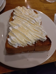 久しぶりに、ヒノマチ食堂にて、食事をしました。今回は、いただいた美味しいメニューについて、お話をしたいと思います。いただいた美味しいメニューは、写真に掲載しました通り、チーズトースト、はちみつホイップトースト、ピザになります。チーズトーストは、大きなトーストに濃厚でコクがあるチーズを乗せて美味しいトーストです。はちみつホイップトーストは、大きなトーストに甘くて、美味しいホイップクリームとはちみつをてんこ盛りにした甘く、美味しいトーストです。ここでしかいただくことができないメニューです。ピザは、ホームメイドのサラミと野菜が乗った美味しいピザです。どれも美味しいメニューです。パン系、ピザ系が好きな方は、是非、食べてみてください。今回も読んでいただき、誠にありがとうございました。 (訪問:2026/03/06)