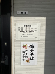 通常 11:00~14:00 土曜日 11:00~14:00 17:00~20:00 日曜日 11:00~14:00 17:00~20:00 祝日 11:00~14:00 17:00~20:00 ※蕎麦が無くなり次第終了 |