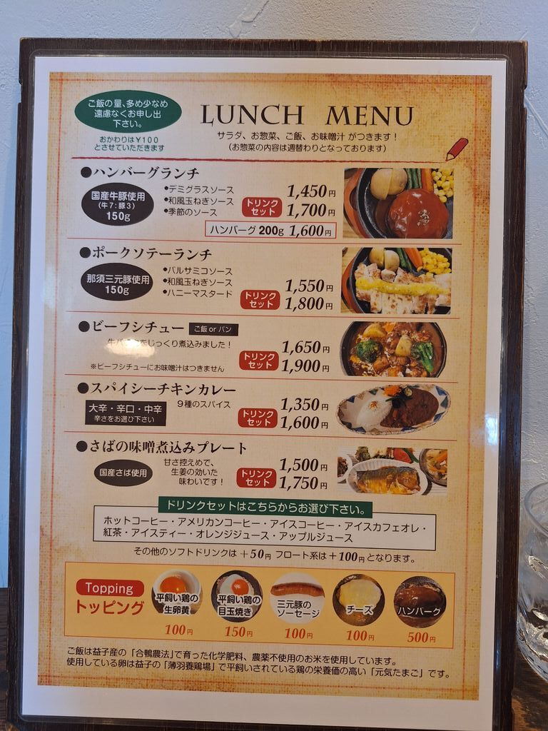 | 週替わりランチプレート | ソフトドリンクセット 1,300円 |