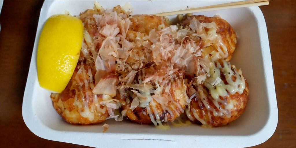 外出の帰りに寄りました!18:00閉店の3分前でしたが、店主さんがOKにしてくれました。たこ焼きの「ソース」と「レモン」をネギ抜き(50円引き)で注文。閉店時間オーバーして申し訳なかったですが、10分ほどで出来上がり。家に帰って熱々のうちにペロリ。とろける美味しさです。タコも1個づつちゃんと入っていて美味しい。お腹一杯で、後で夜食を食べるつもりがそのまま寝ちゃいました☆ (訪問:2025/01/16)