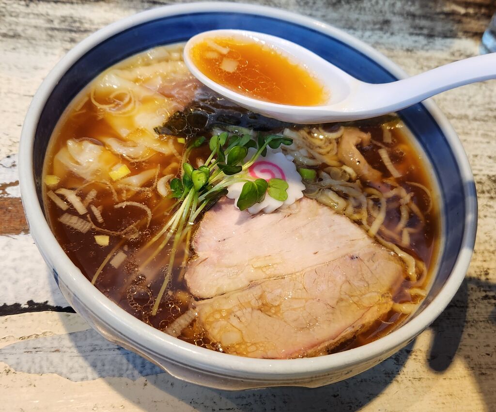 白河ラーメンが食べたくて伺いました。ワンタン麺を注文。細めのちぢれ麺にキリッとした醤油スープ。ツルツルと喉越しの良いワンタン。求めていた白河ラーメンが食べられて大満足でした。 (訪問:2025/06/16)