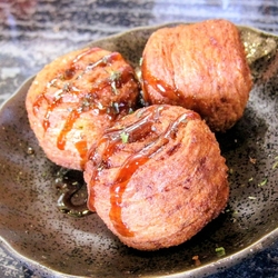 日光の街中を散策中に目に飛び込んできた“生麺焼きそば”の文字!。。。パスタ等では良く見かけますが…焼きそばの生麺?。。。早速に突撃です(^o^)v。。。メニューは…一般的な焼きそばと生麺焼きそば!【日光生麺焼きそば(大:220g)¥1200】トッピングに【炙りチャーシュー¥300】サイドメニューに【日光ゆば唐揚げ(3個)¥500】をオーダーしました(*^^*)。。。「日光生麺焼きそば(大:220g)」の生麺はパスタの平打ち麺や細目のウドンの麺の様な形状の中太生麺でモチモチ食感が新鮮です。オリジナルの塩ソースとカリカリに焼いた鶏肉との相性は抜群です。添付されるレモンを軽く絞って味変するのも楽しいです(*´∀`)♪。。。トッピングでオーダーの「炙りチャーシューは、香ばしくトロットロで旨かったですねぇ。たこ焼きの様な「日光ゆば唐揚げ(3個)」は、湯波巻きを唐揚げにした物ですが、お店オリジナルのソースの味わいがパリッとした湯波の食感に味わいを加えていました。個人的には出汁等のジューシーさが加わると更に嬉しかったです(まぁ揚げ物だから難しいんでしょうかねェ)(*´ω`*)。。。珍しい生麺を使った焼きそば!『焼きそば専門店 焼麺 晃のや』さん!一度ご賞味下さい( ^-^)ノ∠※。.:*:・'°☆ (訪問:2025/11/12)