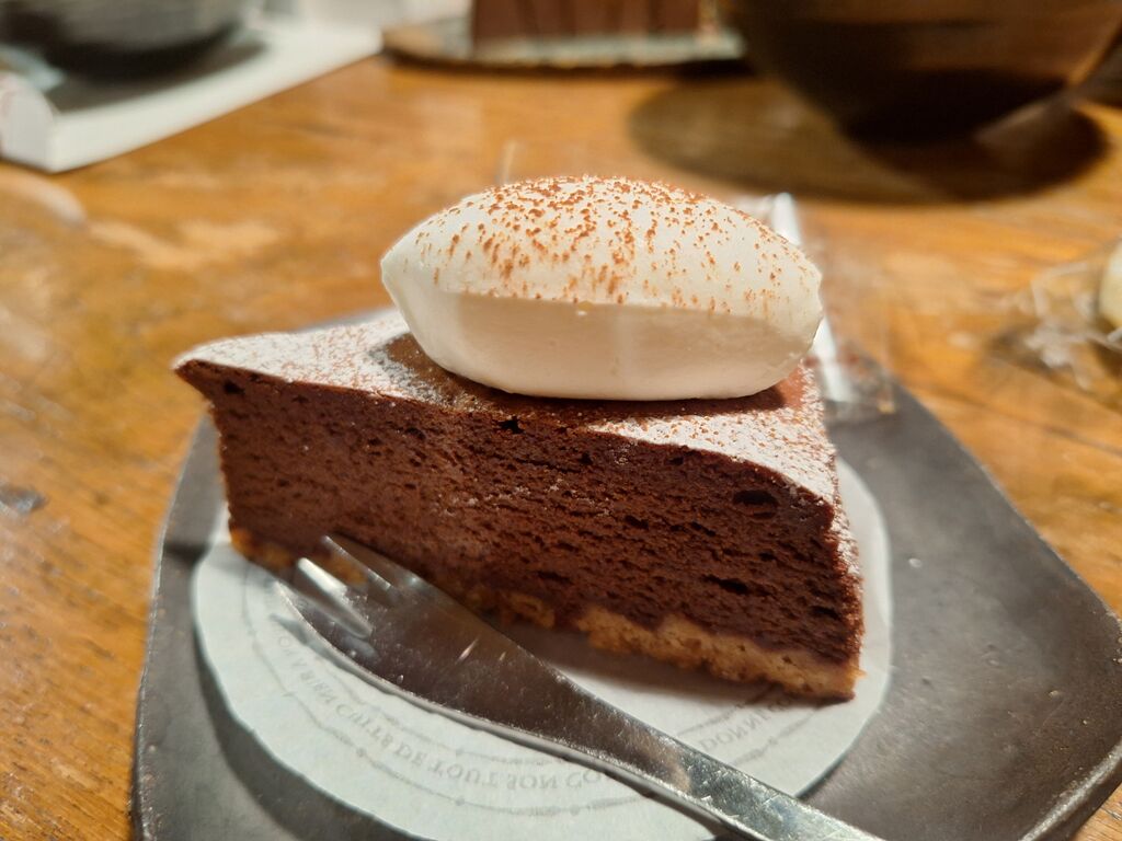 3種類のクリスマスケーキは、どれも美味しそうでしたがこちらのシンプルで素敵なチーズ系の【エトワルモン】にしました。エトワルモンとは《星が出る》という意味!冬の星空の雲の切れ間に⭐︎キラリ⭐︎と光る八等星を表したそうです。芳醇なラ・フランスとチーズにムースにキャラメルがアクセントになっており、ラ・フランスは、ジュレやコンポートそれにムースにも使われそれぞれの違いを愉しむことができました♪カルダモン風味のチョコクリームが入ることでより爽やかなケーキに仕上げられております。全体的に上品さ漂う美味しいクリスマスケーキでした。 (訪問:2025/12/24)