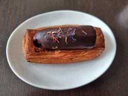 16:30頃になっていたためパンがないかもと思いながらも伺いました。【日替わりサンド(400円+税)】【クロックムッシュ(320円+税)】【チョコバナナデニッシュ(260円+税)】【クリームチーズイチヂク(320円+税)】を購入しました。クリームチーズとイチヂクの組み合わせは好きなもの同士なので真っ先に選びました。伺うたびに違うパンが並んでいます。どのパンを選んでも美味しいです。 (訪問:2025/06/22)