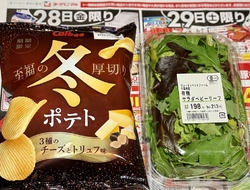 ヨークベニマルさんもブラックフライデースペシャルSALEを開催していました☆広告の品「山崎ドーナツミックス(チョコ&シュガー)」本体価格98円、本日限りのお買い得品♪カルビーの冬限定のポテトチップスも出ていました( *´艸`)「鶏ごぼういなり」は、鶏ごぼう味めしに天然だしいなりを合わせた自社製品で味わい深い一品でした♡ (訪問:2025/11/29)