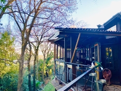 高台のテラスから自然を眺めながらお茶、食事が楽しめます。
