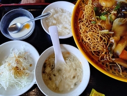 久しぶりに新農村へランチに行きました。土曜日でしたがピークが過ぎていたので待たずに着席できました。注文がタブレット注文に変わってました。今回は麻婆豆腐定食、レバニラ炒め定食、揚げ焼きそば(大盛り)にしました。麻婆豆腐は辛さが選べる様になっていたので中辛にしましたが、程良い辛さで熱々で美味しかったです。レバニラ炒めもボリュームあって味濃いめで、ご飯がすすむ味付けでした。揚げ焼きそばも麺大盛りにしたのでボリュームたっぷり。上の具材もたっぷりで美味しかったです。 (訪問:2025/09/27)