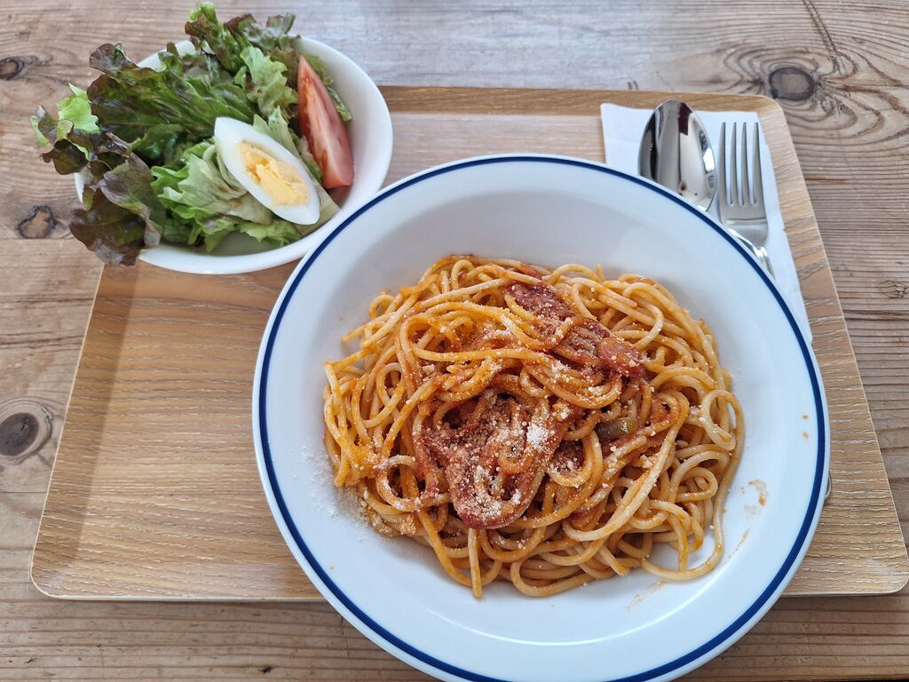 お友達とのランチ会で11時半ごろお邪魔しました。こちらがお初のお友達は、素敵なお店~!とテンション上がってました。靴を脱いでスリッパに履き替え店内へ。ランチは、カレー/タコライス/ナポリタンから『ナポリタンセット1450円』をチョイス。サラダとドリンクがつくセット。食後に『ティラミス480円』をオーダー。待っている間、話しに花が咲き楽しいひととき。ケチャップ味というよりはトマトの味がしっかり感じられるさっぱりと旨味が増したナポリタンであっという間のペロリ♪サラダもついているのはとっても嬉しい!お友達が食べていたタコライスにはスープがついていて、こちらも魅力的。食後のティラミスはさっぱりめの食べやすいティラミスで、食後でもさっぱり美味しくペロリ☆お昼過ぎにはほぼ満席になる人気店。店主さんが一人で全てを担っているので、少々お時間はかかりますが、まったりした時間が流れており、癒しの時間を楽しめます^^ (訪問:2026/02/22)