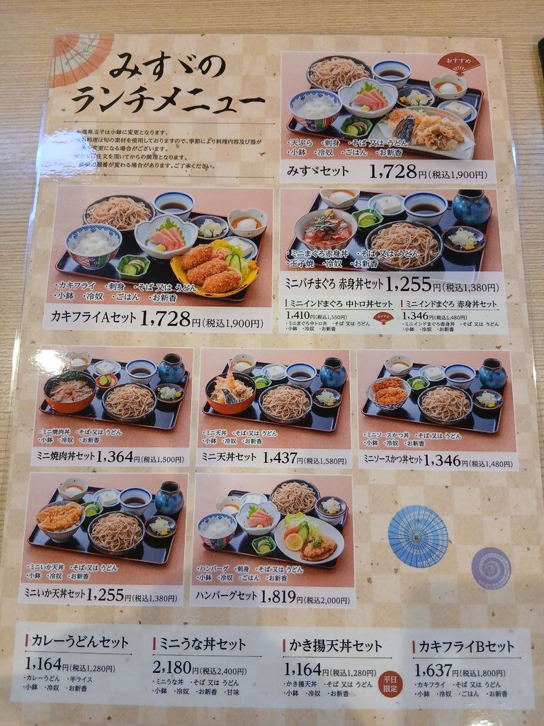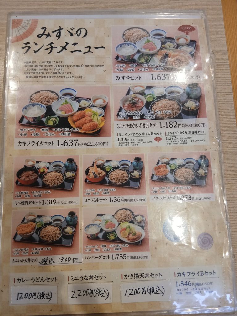 | ◇みすゞセット 天ぷら・刺身・そば又はうどん・温玉・冷奴・ごはん・お新香 |