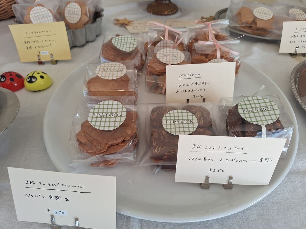 高根沢クリスマスマーケットに出店されていました。この前お店でお話したことを覚えてくれていて、声をかけていただいて嬉しかったです。今回は、クリスマスらしい「ホリデークッキー」と「米粉スノーボール」を購入しました。さっそくスノーボールをいただきましたが、ほろほろとした食感に、ちょっと塩味も感じられ、気が付けば完食してました。ホリデークッキーは、クッキーの上に乗った真っ赤なチェリーが、赤鼻のトナカイさんを連想させます。ちっちゃな赤い靴下が可愛くて、なかなか封を開けられそうにありません。大切にいただこうと思います。美味しい幸せをありがとうございました。ごちそうさまでした~。 (訪問:2025/12/14)