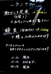 | ◇ランチ(手作りデザート・ドリンク付) 和ごころ定食・海鮮丼・数量限定!煮魚定食・うな重 |