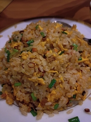いつもはランチでの利用ですが、初めて平日夜に伺いました。昼間とは違って大人数のグループ客なども多く賑やかでした。注文したのは海鮮刀削麺、台湾炒飯、唐揚げマヨ定食です。刀削麺は麺が独特な形状で、モチモチしてました。台湾炒飯も写真がなくて、どんな炒飯が来るのか楽しみにしてました。スライスした鷹の爪がたくさん入っており、ちょっとピリ辛でしたが見た目より辛くなくて食べやすかったです。唐揚げマヨ定食は餃子がセットなのでボリュームたっぷりでした。 (訪問:2025/10/09)