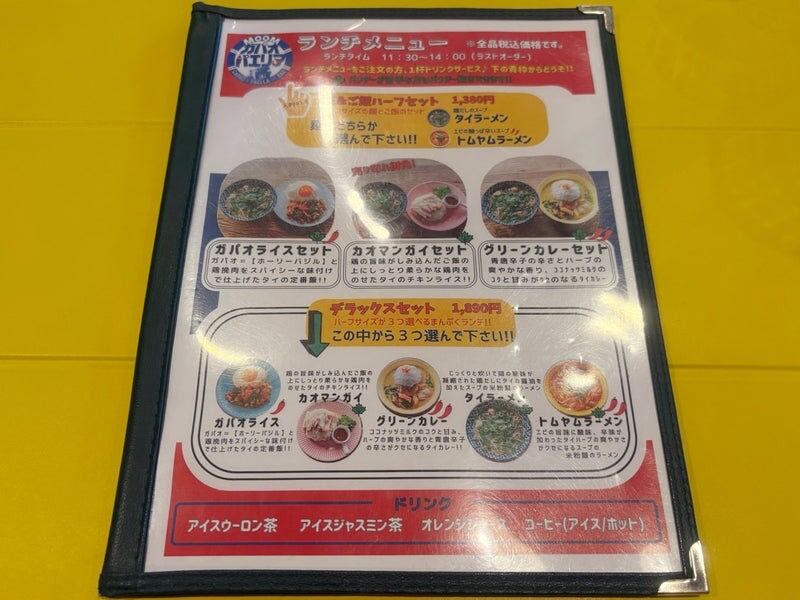 | ガパオライスランチ(ドリンク付き) | 1200円(税込) |