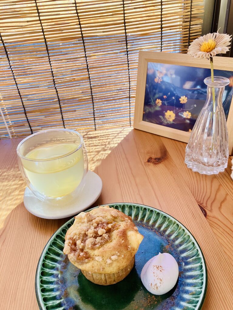 近くに用事があったので、その前のブレークタイムをこちらで過ごしました(^^)マフィンをイートインしたのは初めて❣️美味しそうな【柿ジャムクリームチーズ豆乳マフィン】と冬らしい【ホット柚はちみつ】をいただきました。好みのしっとり生地に柿ジャムがトロリと入っていてなかなか他では味わえない美味なマフィンです♪神社参拝後で身体が冷え切っていたので柚はちみつが身体に沁みました(ღˇ◡︎ˇღ)どちらも美味しくいただきました。女性店主さんは、いつも笑顔いっぱいで素敵な方です。そして定期的に伺いたいお店です❣️ (訪問:2025/12/04)