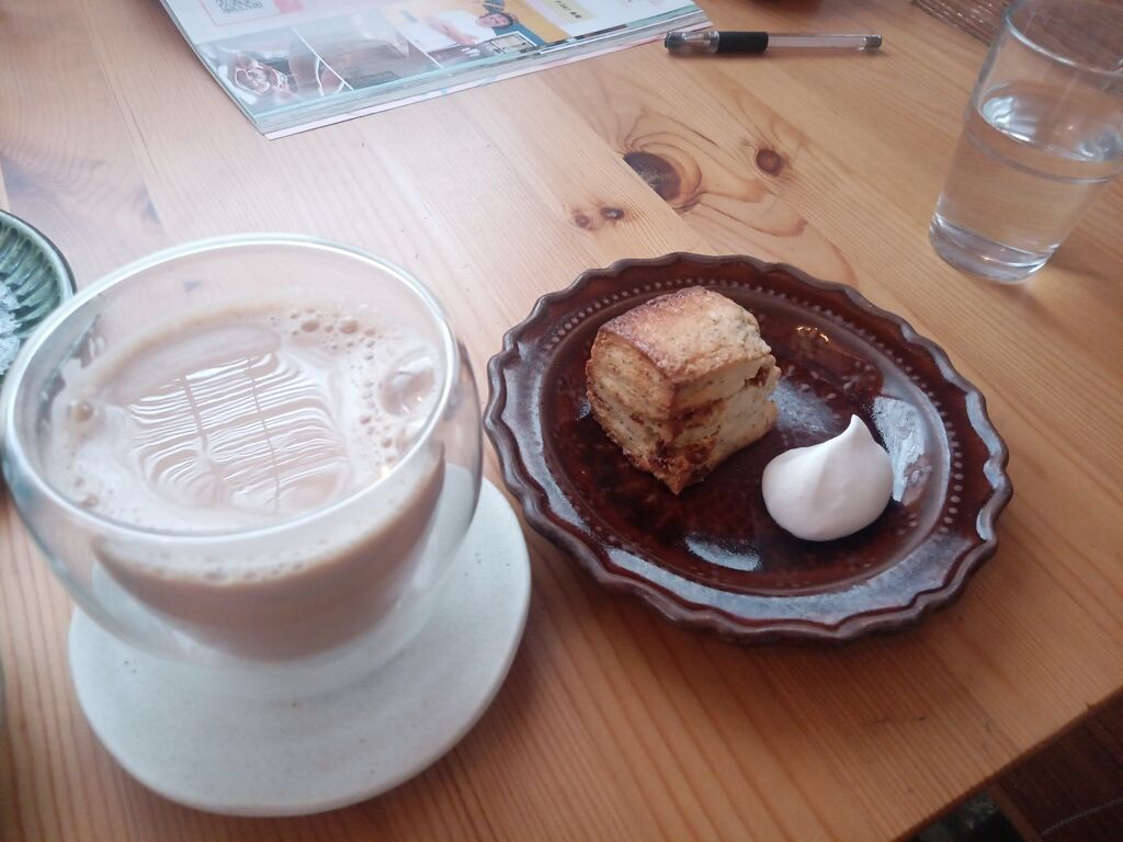 近くに行く用事があったので、空いた時間にカフェを楽しんで来ました。ソルティーバスクドチーズケーキとスコーン。そしてマサラチャイとぶっちブレンドをいただいて来ました。生クリームがケーキとスコーンの美味しさをより一層引立てくれ、美味しかったです(•ө•)♡ (訪問:2026/02/11)