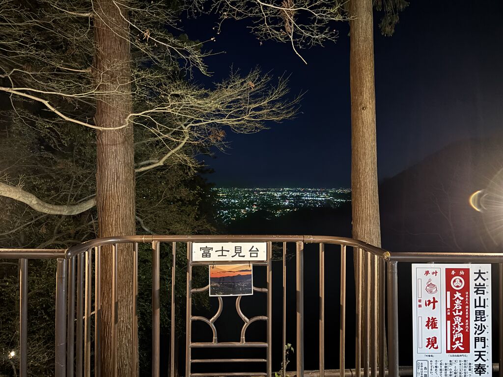 初日の出を見に行く前に立ち寄りました!毎年、大賑わいなので駐車場が心配されましたが、どうにかギリギリとめられて、階段を登り本堂のほうへ。夜間でも照明が随所にあるので、安心できる明るさです。外ではお焚き上げに加えて、露店(お豆腐屋さん)や、事務所の方ではチャーシュー丼なども販売。富士見台もおすすめです!足利の街ってこんなにキラキラしてるんだって感動できますよ (訪問:2026/01/01)