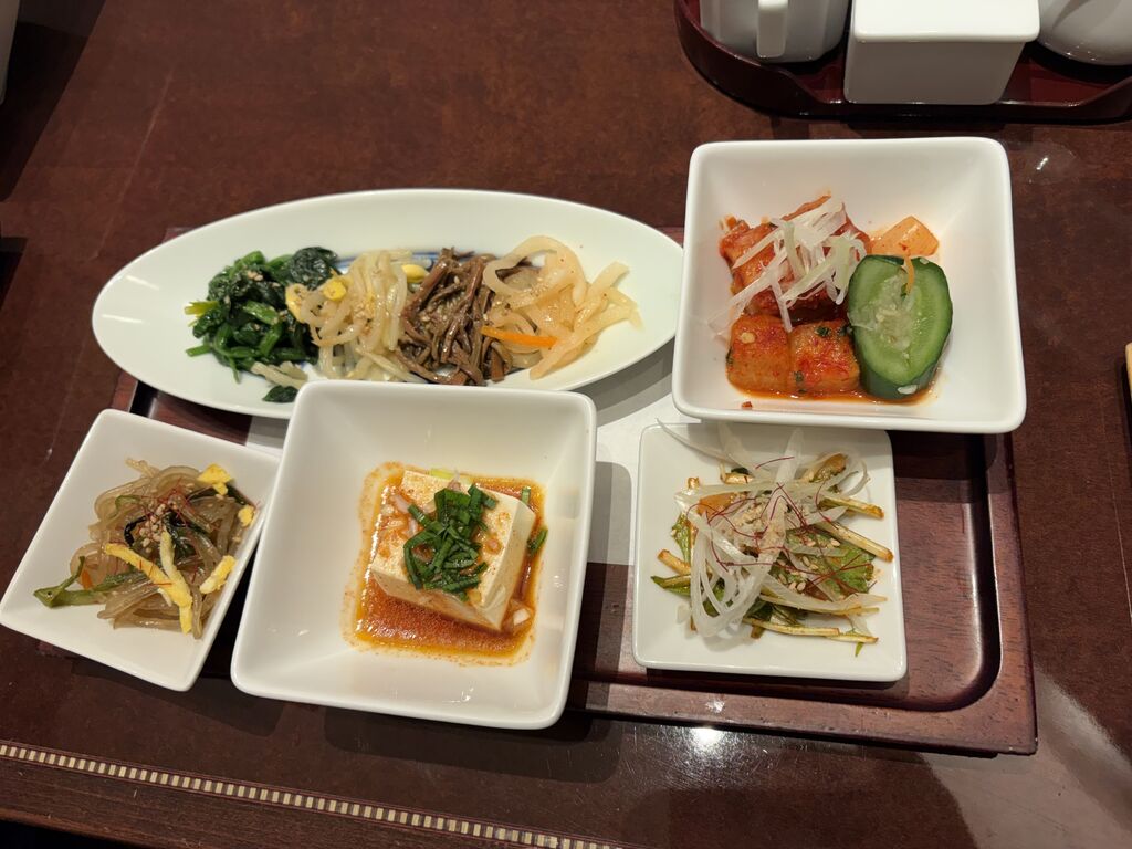 那須(なす)コースを予約しました。・前菜盛合せ(キムチ盛合せ、ナムル盛合せ、南大門サラダ、韓国奴、イカフェ、チャプチェ)・塩焼物盛り合わせ(上タン塩焼・上ハラミ塩焼・豚バラ塩焼)・たれ焼き物盛合せ(和牛上カルビ・和牛上ロース・牛ホルモン)・お食事(冷麺orビビンバorコムタンがゆ)・デザート(手作りプリンor手作り杏仁豆腐orアイスクリーム)の豪華メニューでした。LINEでドリンク1杯無料になったり、みんな満足そうでした(^^) (訪問:2025/02/07)