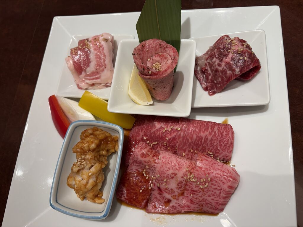 ランチに伺いました。13時頃なので混んでいて予約をしていなかったので少し待ちました。ここは以前「ますとます」という高級焼肉店だった所ですが、今もそんな感じです。ランチだとリーズナブルなメニューがあります。私も連れも同じAランチで、440円追加して白飯をハーフビビンバに替えてもらいました。カルビ、ロース、ハラミ3種のお肉を味わえて、どれも柔らかくてとても美味しかったです。ドリンクもセットになっているので、コーヒーをいただきました。これで税込2989円、お腹いっぱいになりました。 (訪問:2025/09/21)
