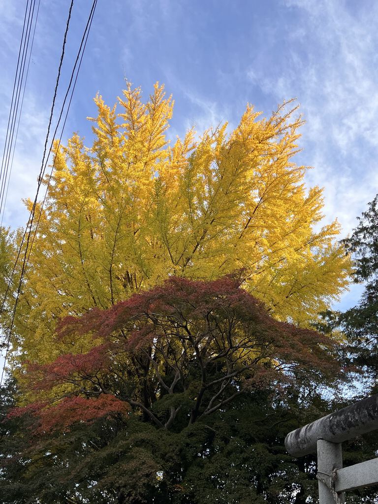 紅葉を観に伺いました。思ったよりも紅葉が早く、少し見頃は過ぎてしまった感じはしましたが、見事なもみじを堪能できました。社務所うしろのイチョウの木は葉が落ちていて、黄色の絨毯が美しかったです。 (訪問:2024/11/23)