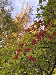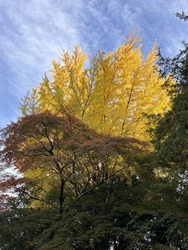 11月はじめの日曜日、紅葉の様子を見に伺いました。紅葉はまだまだ、銀杏は少しずつ色付きはじめといった感じでした。真っ赤に染まった紅葉と青空とのコンビネーションは最高なので、もう少ししてからまた伺いたいと思います。 (訪問:2025/11/02)