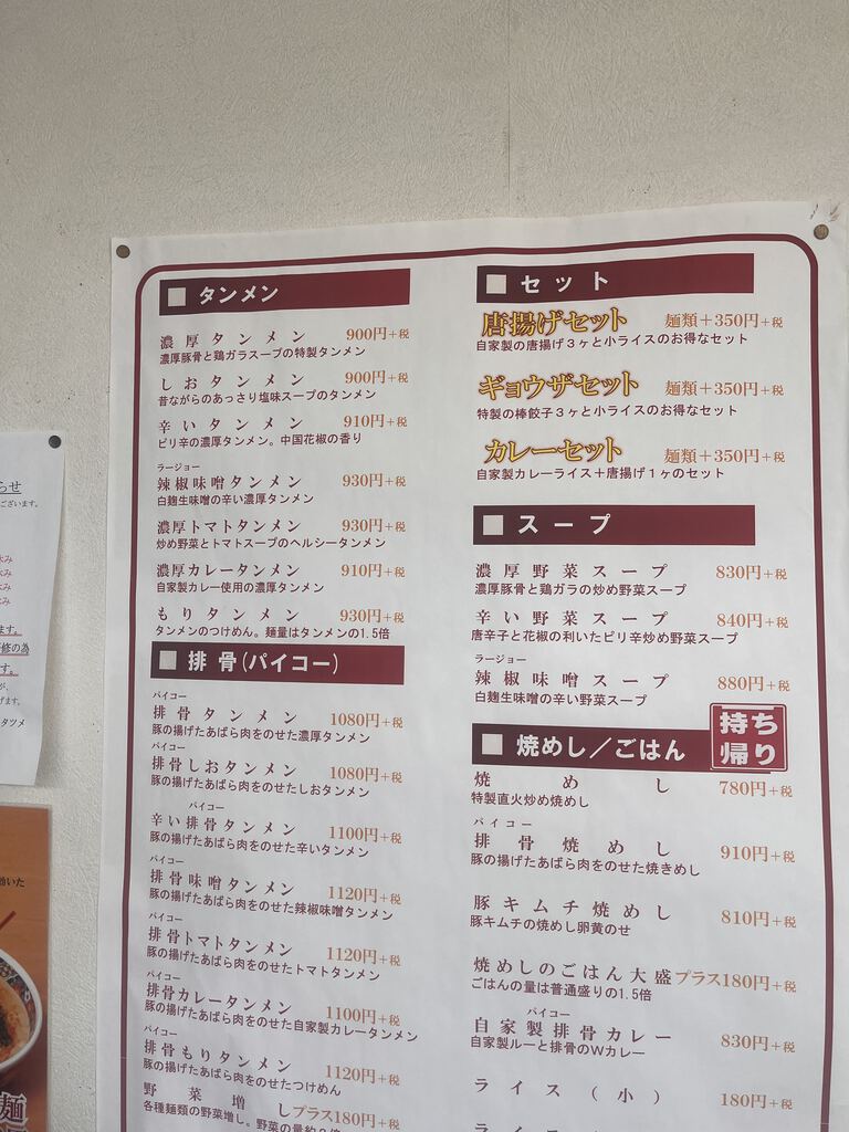 | 排骨タンメン | 1020円 |