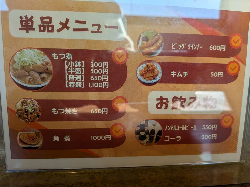 | ダブル定食(もつ煮・もつ焼) | 950円 |