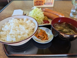 ビッグウィンナー定食をいただきました。定食メニューはいろいろあるけど、この名前の定食って初めて。しかも、お値段!二度見必死のお値段です。なので。迷うことなくこちらをお願いしました。待ち時間は10分弱。出て来たお料理に圧倒されました。ごはんの盛り、素晴らしい!ウィンナーでっかい!!ボリューム満点です。スープ、熱々でおいしい。温まります。キムチも美味しい。このキムチだけでごはん完食できそうです。盛り盛りごはん、凄いおいしいごはん。頬張って食べる瞬間、最高です。キャベツもしゃきしゃきでおいしい。そしてウィンナー。皮の食感が心地いい。ジューシーウィンナー、おいしいです。このタイプのウィンナ―、久しくいただいてないので、凄い幸せ。店内はアットホームな感じで、程よいレトロ感。角煮も好きなので、ぜひ頂きたいです。 (訪問:2026/01/04)