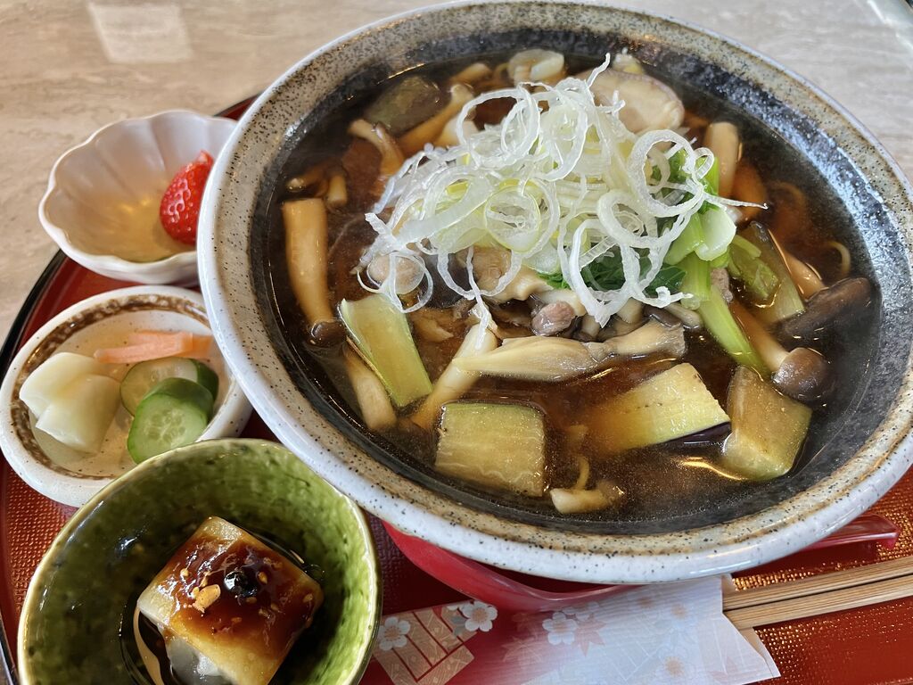 少し寒くなって、身体が温まるイノシシ肉を食べたくなり、訪問しました。八溝ししまるつけ蕎麦です。栃木と茨城県の県境の八溝はイノシシが取れます。その猪肉をつけ汁にした蕎麦が絶品。イノシシ独特の脂がコクが有って旨い。野菜もたっぷり。蕎麦は蕎麦で最高です。この季節ならではの楽しみ^_^ (訪問:2025/12/03)