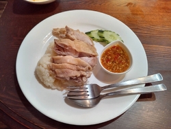 【鶏肉の炊き込みご飯(カオマンガイ)】カオマンガイとトムヤムクンのランチセットを注文。サラダ・デザート・ドリンク付きです♪すごくコスパもよくて他のメニューも気になりました~ (訪問:2025/04/25)