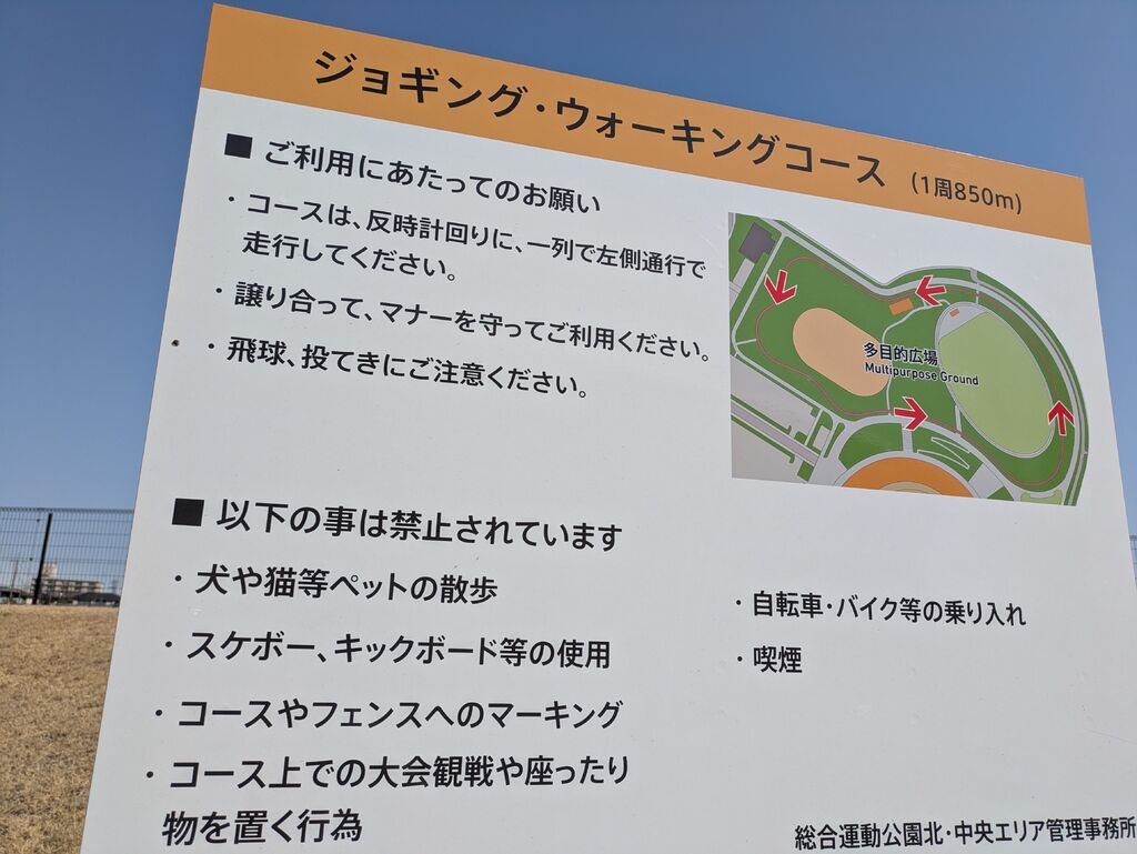 NEW弾性舗装のコースを利用しました。サッカー・ラグビー場の外周は906mで、多少の登り下りのあるコースになります。多目的広場外周は850mで登り下りの傾斜がきつめのコースです。カンスタから多目的広場をぐるっと周ると1.5kmになります。長さや傾斜に様々なコースがあり、好きなコース選びながら利用できますのでおすすめです。 (訪問:2026/03/22)