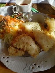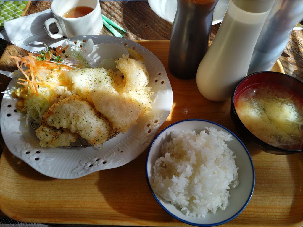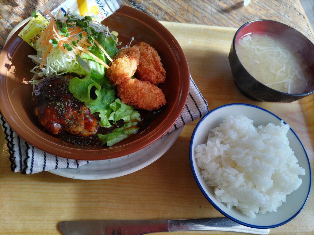 土日祝がお休みのこちらのお店。OWLさんに行った方がみんな「良いお店だったよ」と言うので行きたいと思いながらなかなか行けず、やっと伺うことができました。民家を改装していて、テーブル席と靴を脱いで入るお部屋があります。私達は靴を脱いでくつろげるお部屋で、カサゴのフリッターとハンバーグセット(揚げ物を選べ牡蠣フライをチョイス)を注文しました。飲み物はコーヒー・紅茶・麦茶などセルフでいただけ、サラダのドレッシングがめちゃウマでした。カサゴはふわふわサクサクで、付け合わせにまたまた野菜がのってきてヘルシーです。子供にはジュースもサービスしてくれました。お店の方の優しい雰囲気も素敵でとても満たされました。帰りに美味しかったドレッシングを買って帰りました。平日にお休みが取れたらまた行きたいお店です。 (訪問:2026/02/09)