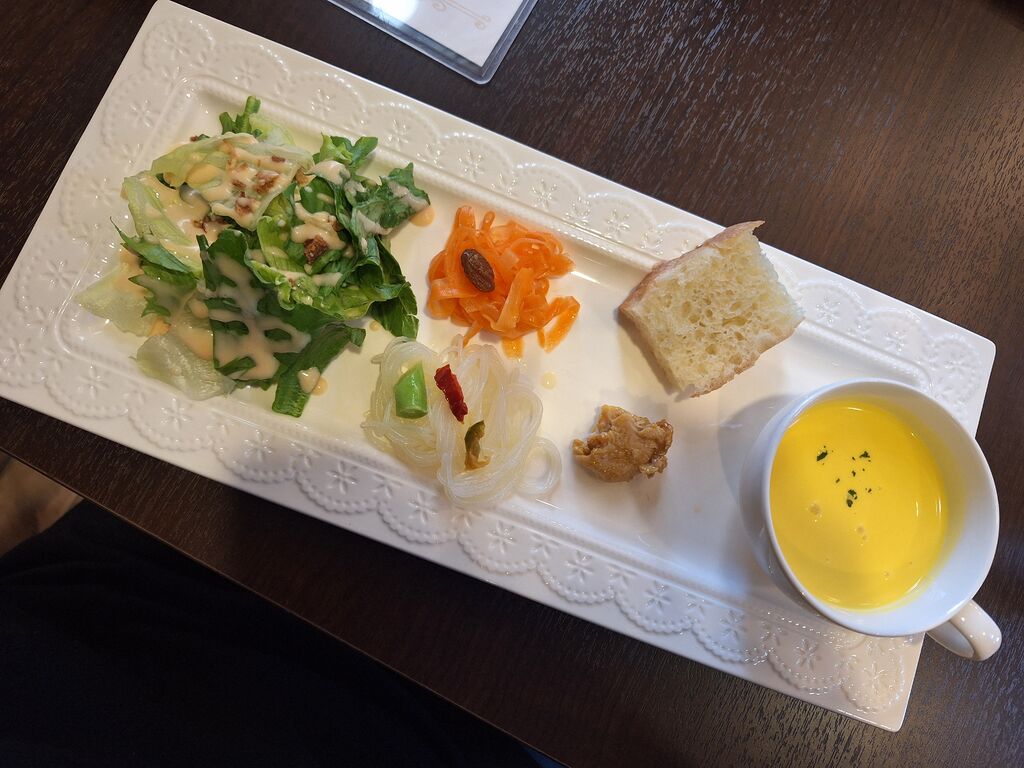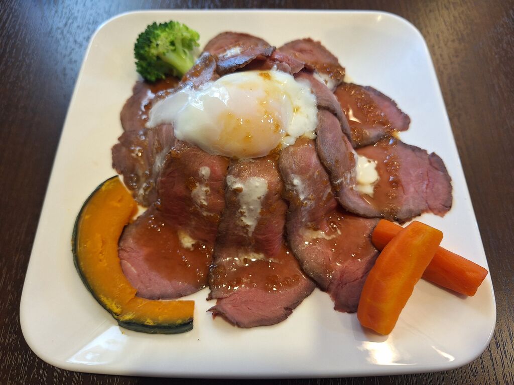 通る度に気になっていたお店☆ママ友さんが予約してくれて初ランチ訪問♪オススメメニューの"ローストビーフ丼"をセットでいただきました。セットには前菜5点&スープとデザート付き。丁寧な料理の説明書きがあり、眺めながら味わいました。メインのローストビーフ丼は、ライスの上にローストビーフが綺麗に盛られ、特製ソースと半熟卵の調和が絶妙でとても美味しかったです。一人で贅沢にローストビーフを堪能できる機会はそうはないので大満足!この日のデザートは“シナモン林檎クレープ”でした。他のも食べてみたーい!是非再訪したいです(^ー^) (訪問:2025/09/03)