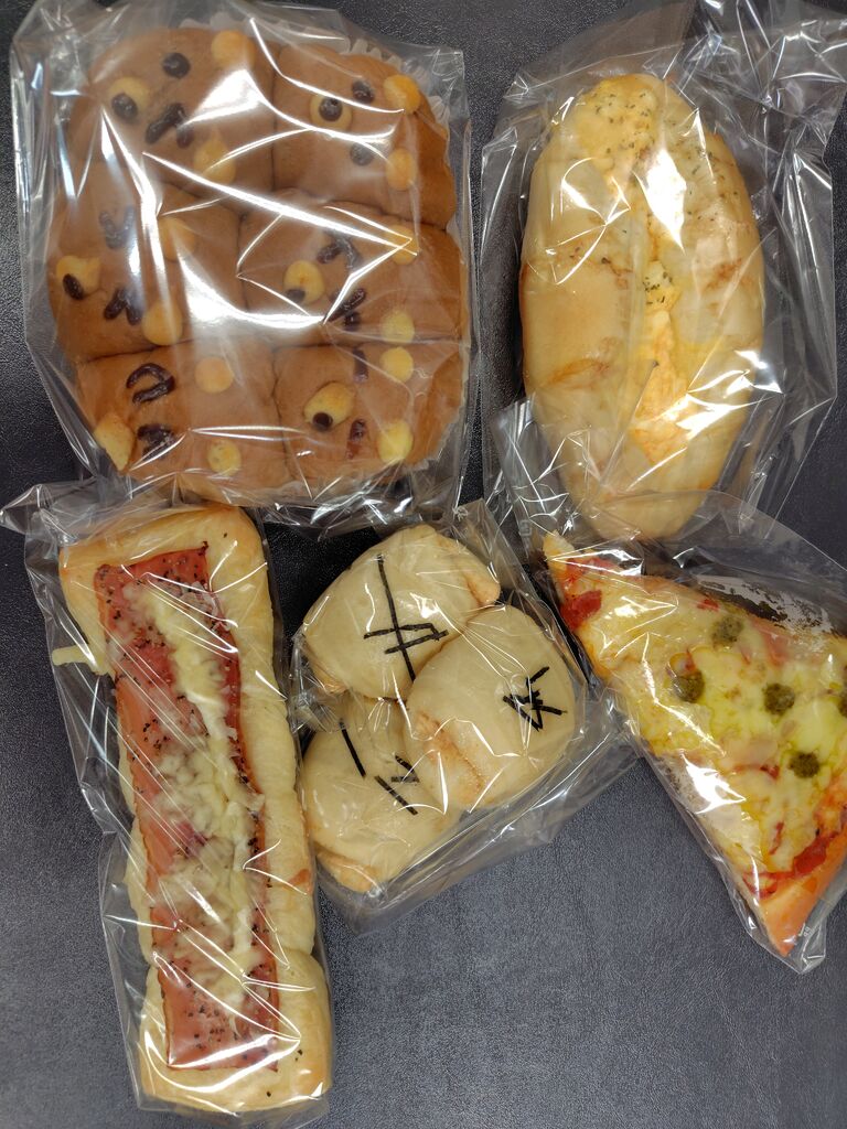 同僚と昼食用のパンを買いに行きました。細い道を通るため、初めて来た同僚は1人で来られるか不安になると言っていました。【ベーコンチーズデニッシュ(150円税込)】【たまごパン(180円税込)】【ミニめんたいパン(180円税込)】【くまさんぱん黒糖(230円税込)【ピザ(200円税込)】を購入しました。くまさんぱんは1個ずつ顔が違っていてちぎりやすくなっています。可愛くて食べるのがもったいないです。 (訪問:2025/05/16)