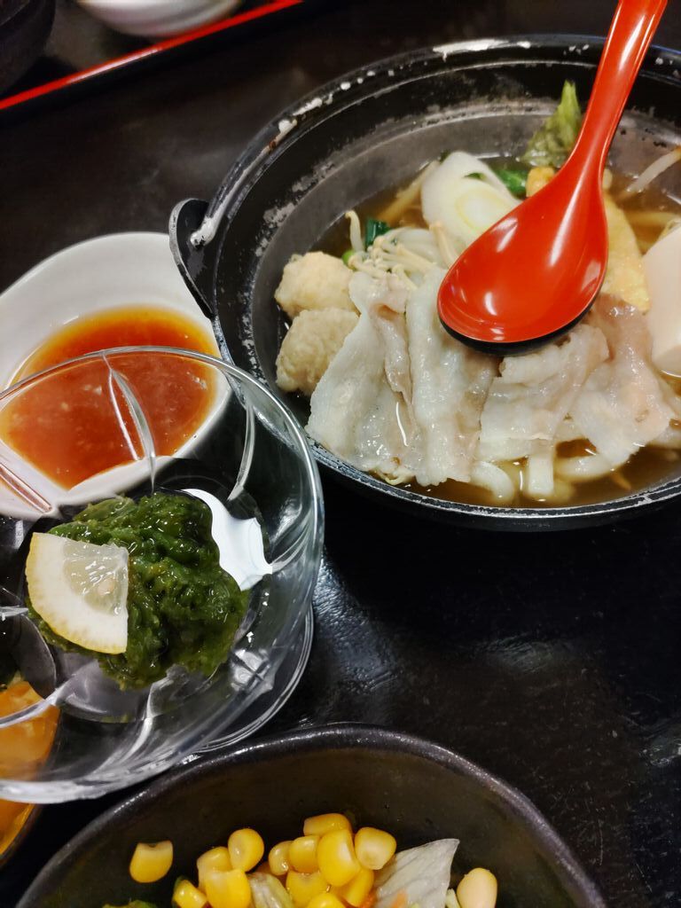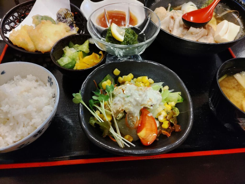 旦那さんと母を誘ってみつよしさんにランチへ。本日の日替定食は【肉なべ】【イカの天ぷら】【ツナコーンサラダ】【めかぶの酢の物】でした。とにかくボリュームがあるので半ライスでもお腹いっぱい。肉なべにはうどんが入っていたり天ぷらもイカだけじゃなくピーマン、ナスも。全部美味しかったです。流れ星さんが言ってる通りXのメニューをチェックして行くのがいいですね。お店に活気があってとてもよかったです。(◕ᴗ◕✿) (訪問:2025/10/31)