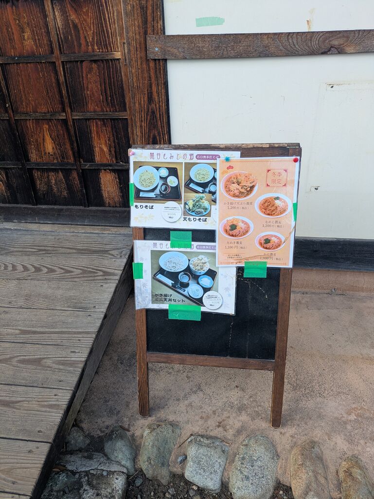 大きい古民家でお蕎麦が食べられます。蕎麦打ち職人さんたちのおいしいお蕎麦です。室内は天井が高く大きい梁が。テーブル席やお座敷席も。天もりそば1300円温かいおそば900円を注文。帰りにはかわいいケースに入った爪楊枝をいただきました。店内にトイレがないので隣の観光案内所敷地内にある外のトイレを利用してくださいとのことです。 (訪問:2026/01/24)