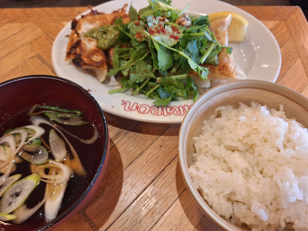 妹が帰省して駅に迎えに行った際に一緒にお昼を食べました☆ちょっと列ができていたので、私が先に並んで待っていたのですが、意外にどんどん進んだので、注文して待っていました。回転が早いので諦めずに並ぶ事をオススメします!私は“焼き餃子ランチセット”858円、妹は“パクチー焼き餃子ランチセット”968円をチョイス。大きな餃子5個は多いかなと思いながら、ペロリ食べられちゃいました♪お店の味をまたおうちでも食べたくて、冷凍餃子2人前と4人前を持ち帰り。じゅわ~と肉々しい美味しい餃子にハマりました(^ー^) (訪問:2026/01/22)