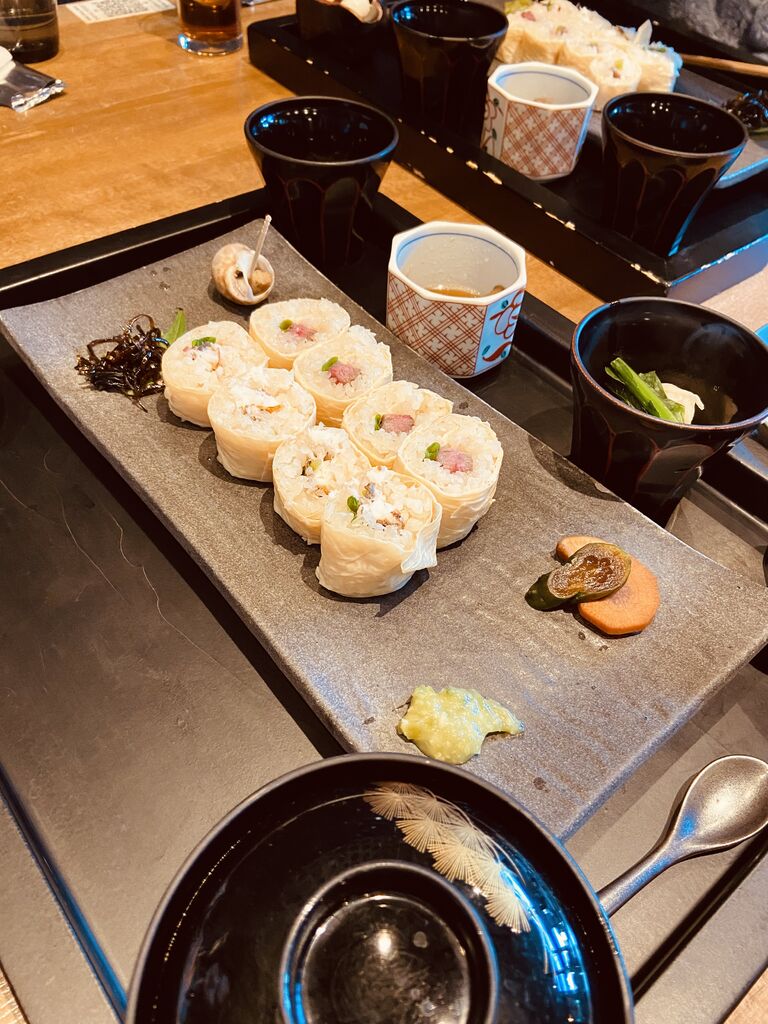 以前から行ってみたいと思っていて、やっとうかがうことができました。こちらは、ご予約をオススメします。また、お店には駐車場はありませんから、市営駐車場に停めました。湯葉に巻いてある具材は、《和牛》《真鯛と三つ葉》《お野菜》3種類から選べ、ハーフアンドハーフもできるとのこと。真鯛と三つ葉が大好きな組み合わせだったので、迷わずオーダー。真鯛がカリカリに焼いてあり、めっちゃ良い食感です。丁寧に作られた小鉢が並び味付けも美味です。夜から考えるとランチはリーズナブルにいただけ、2720円です。美味しいらんち、ごちそうさまでした。またうかがいたいお店です。 (訪問:2024/09/05)