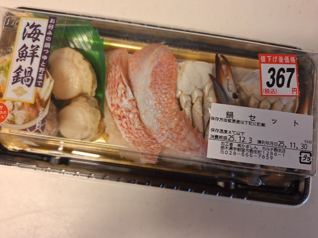 栃木銀行と足利銀行のATMや、お隣のマツキヨやseria利用もあり、夕飯のおかずを買いに寄りました☆“ねぎとろ”に“むき甘えび”に“厚焼き玉子”で海鮮丼に、“マヨたまカツ”の揚げ物に、“ちょこっと鍋セット”の汁物…オフシールが貼ってあるお値下げ品を多数購入しちゃいました(^ー^) (訪問:2025/12/03)