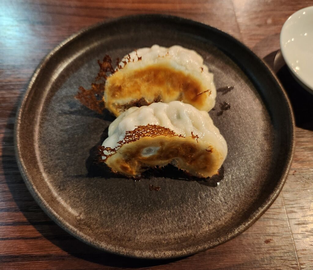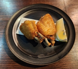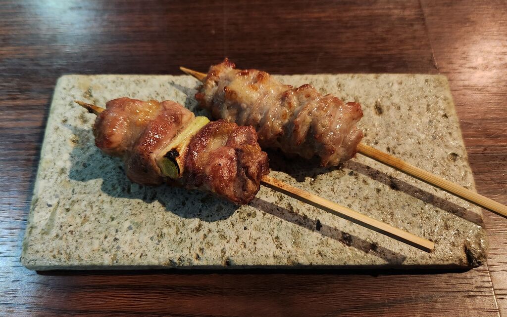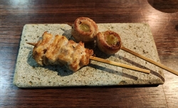前から行きたかった前日までに完全予約制の焼鳥屋さんに初訪問です。初めてなので注文は「スタンダード 5,500円×2」鶏生ハムとイチヂクと焼き柿のマリネ、特撰合鴨、せせり、ぜいたく地鶏ぎょうざ、媛っこ地鶏、鶏白子塩麹、やみつき手羽揚げ、グリーンレモン、肉付軟骨、豚バラ&シャインマスカット、鶏ガラスープでオニオングラタンスープ、レバームースもなか、茹で落花生、ささみわさび、つくね(極)、〆の麺、焼芋のクリームブリュレ。ドリンクは私が「レモンサワー 680円」「熟成レモンサワー 720円」「裏レモンサワー 720円」「森嶋 1,100円」「三岳 650円」「明るい農村 650円」。妻が「鳳凰美田梅酒 650円」「柚子レモン酒 650円」「ウーロン茶 400円」。品数が多くて3時間かかりました。〆は私はカレーラーメン、妻はスキップで−200円。全部美味しかった。 (訪問:2025/11/15)