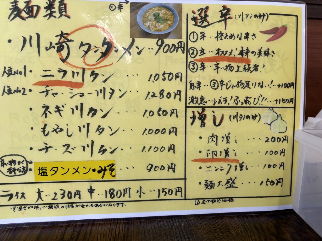 川崎タンタンメン(辛さ調整可能) 1辛〜激鬼 |