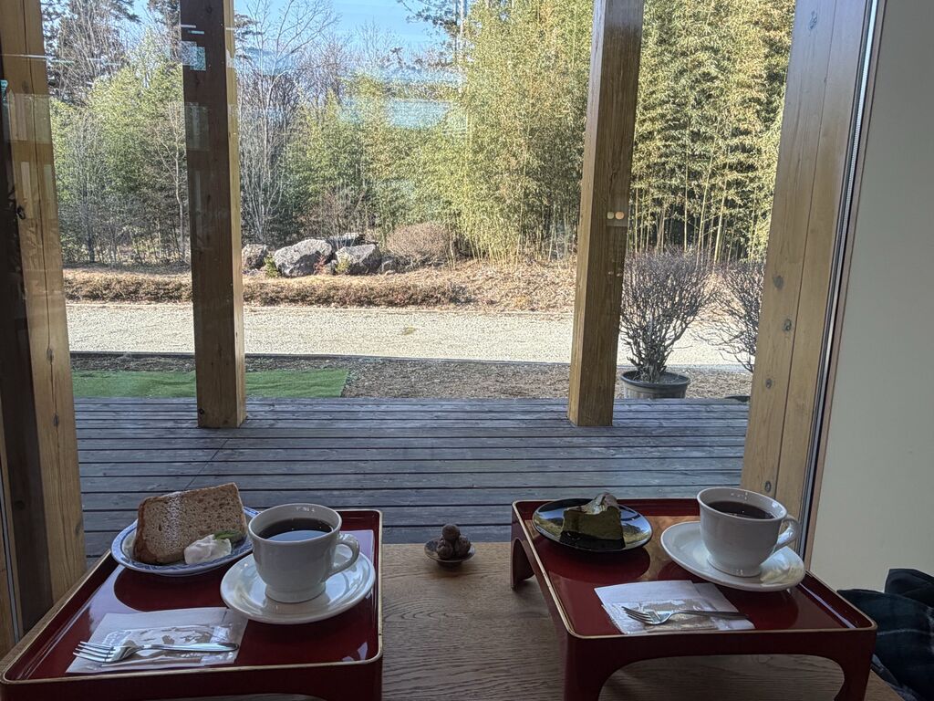 食後のカフェタイムに、初めて訪問し、店内でコーヒーとシフォンケーキをいただきました。窓際の席に座りましたが、店内は広々しており、竹林の庭を眺めながら、贅沢な時間を過ごすことが出来ました。コーヒーもケーキも美味しかったです。 (訪問:2025/12/13)