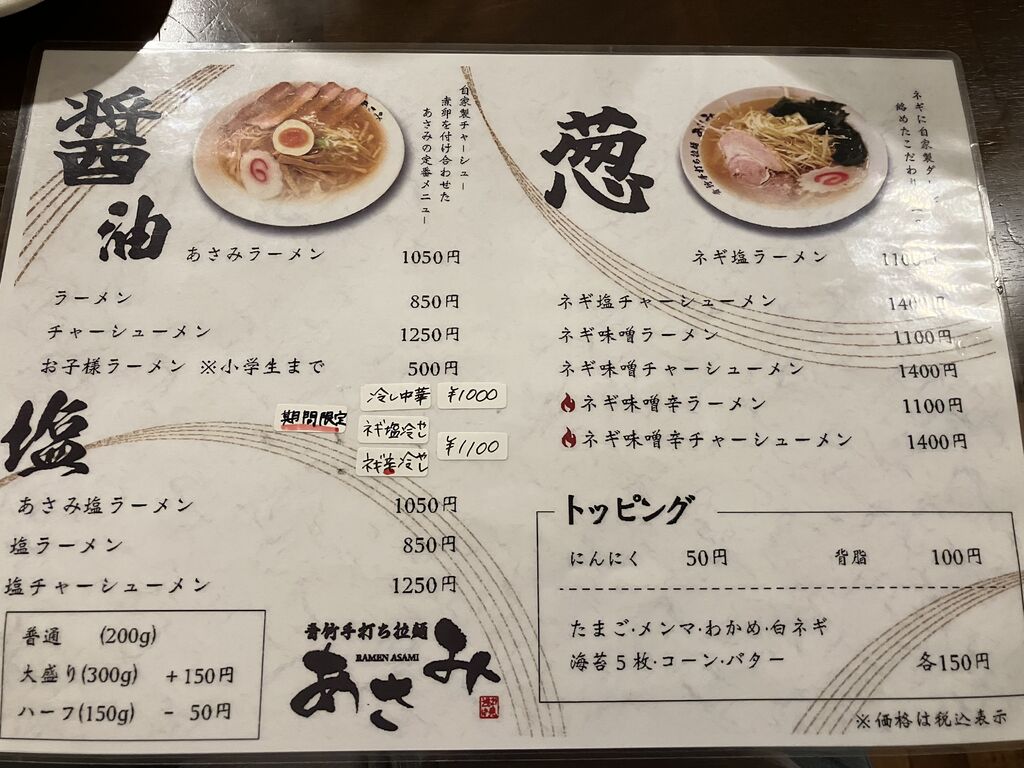 あさみラーメン、塩チャーシュー麺を注文しました。明らかにチャーシュー麺のチャーシューの方が大きくておいしそう。肉好きとしては今後はチャーシュー麺を注文します。スープがおいしいですね。 (訪問:2024/05/05)