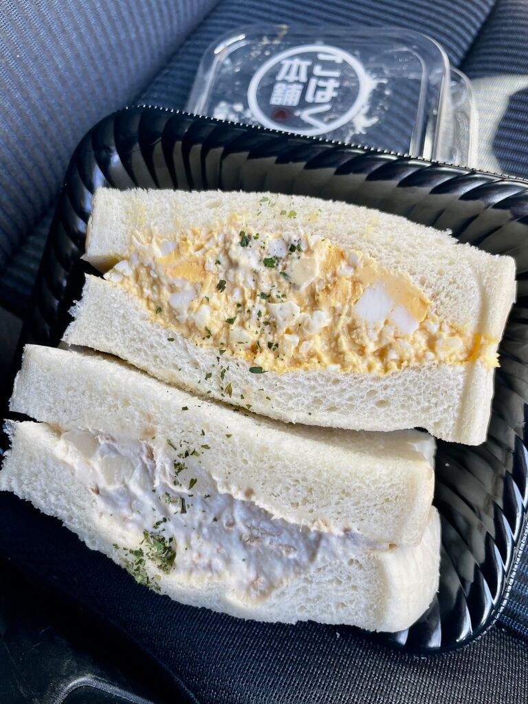 トライアルのお弁当、お惣菜。全般的にデカ盛り傾向で、ついつい買ってしまいます。今日はたまご、ツナサンド。先日はたまごサンドを買いましたが、たまご3個分のボリューム具材。なかなかの満足度でした。今回は半分がツナサンド。これも具材のボリュームが凄い。たまご、ツナが溢れそうに挟まってます。こちらも食べ応えが有って、大満足。充分な昼ご飯になりますよ^_^ (訪問:2026/02/11)