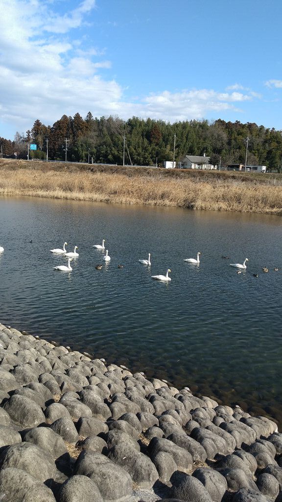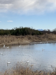 1月23日に訪れました。約50羽の白鳥を確認しました。当日は風が弱く穏やかな天気だったせいか、白鳥たちはのんびりと休んでいるように見えました。白鳥の優雅な姿にはいつも癒されます。 (訪問:2026/01/23)