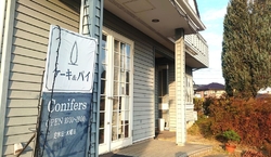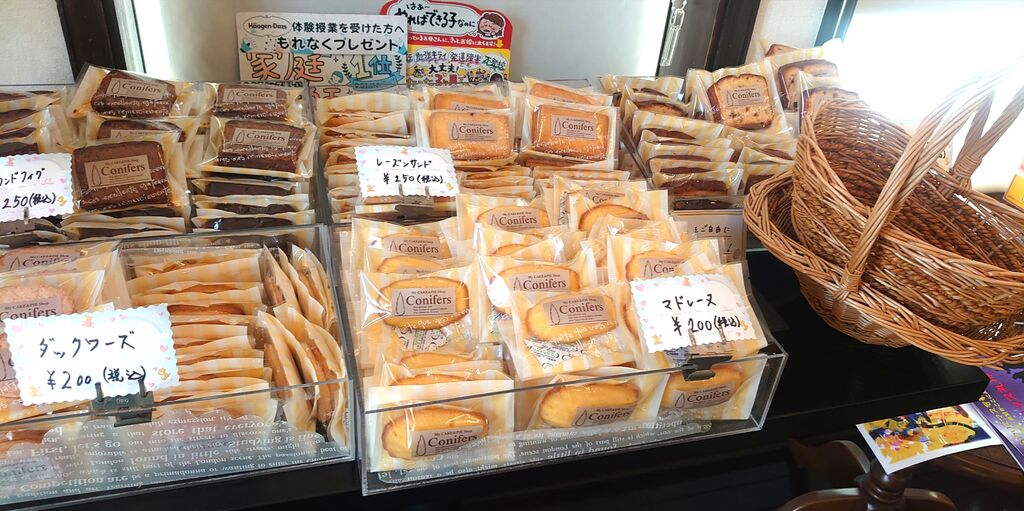店の周囲に植えてあるコニファーが目印です。宇都宮の『パンプス』と同じケーキ&パイが買えるお店として皆様にご好評をいただいております。こだわりの生クリームと厳選した素材の味わいをぜひご賞味ください。