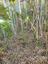 多功の多功城址(上三川町文化財)です。ゴルフ練習場の駐車場に立派な石碑が建っておりました。ゴルフ練習場の周囲を歩いてみると北側に土塁や堀の遺構が東から西へと巡っておりました。藪に覆われて入りずらいので一番入りやすい場所の土塁付近の近所の人にお願いしチョットだけ土塁に入らせて頂きました。深い堀と堅固な土塁が顔を出しており上に上ると中々の高さでありました。お話しを伺うと城跡周辺の家は家臣だったといわれているそうで多功城は上三川城より大規模な造りであったそうです。南から北へも一部土塁と堀などの遺構が残っていそうで夢が膨らむ城址です。 (訪問:2021/02/02)
