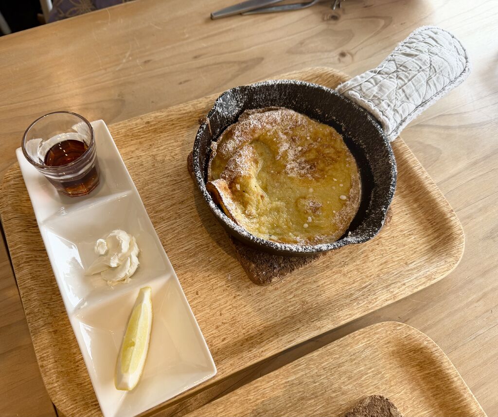 会社の方々とランチに伺いました。メニューがいっぱいあり迷いましたが、群馬県産赤城豚のグリエを注文。お肉がとても柔らかく美味しかったです。デザートなしメニューを頼みましたが、やっぱり食べたくなり別にダッチベイビーを注文し、みんなでシェアしました。また伺いたいです♪ (訪問:2022/12/14)