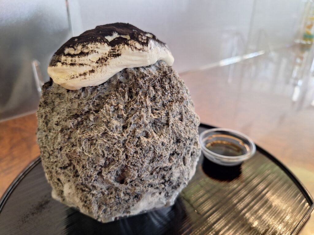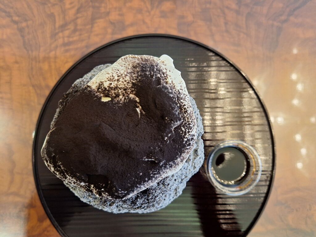 友人の天然氷のかき氷が食べたい!とのリクエストで、10時半過ぎに到着。既に三組の方が整理券を取られており、まだまだかき氷が恋しい時期の模様。並んでる間もどれにしようか悩みまくって、『黒胡麻ミルクマスカルポーネ1550円』をチョイス。運ばれてきたかき氷はグレー&ブラック。なんともなかなかかき氷で見ないお色。一口口に含むと、胡麻のお味と香りが濃厚で絶品‼ふわっふわのマスカルポーネとも良い相性で美味しすぎます☆中心には香ばしいクルミも潜んでおり、食感、味ともにぴったり‼友人は白桃ミルクをチョイスしていましたが、都内で食べたものに比べてとても美味しく残すこと無くペロリと食べられちゃった‼と大喜びでした♪まだまだこの時期でも人気のかき氷、様々種類があるので、ぜひまたお邪魔したいです^^ (訪問:2025/09/28)