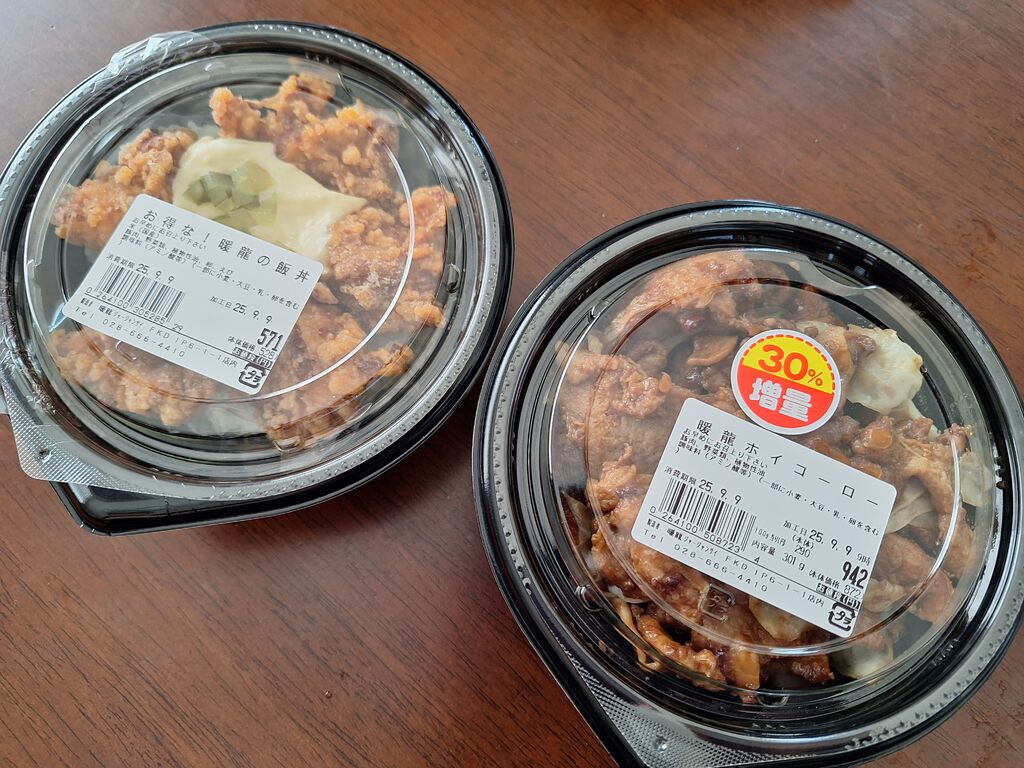 自分のお昼と夕飯のおかずを探していて目に留まりました☆唐揚げが5個も乗ったお得な丼に、30%増量のホイコーロー!ボリューミーでしっかり味が付いていてごはんが進みます(^ー^) (訪問:2025/09/09)